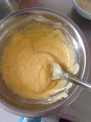 化开的酵母粉倒进面粉里然后再放入紫薯泥