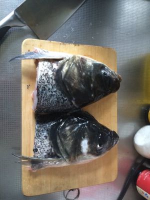 市场买胖鱼头一个,二十多块钱,现杀的啊。