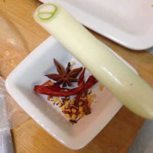葱段、干辣椒、八角备用。