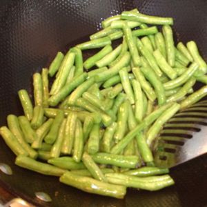 扁豆掰好洗净,过少油干煸熟。