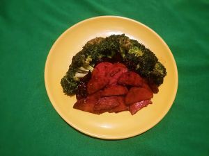 先把火腿片倒入,小火煎炒至两面金黄后再加入切好的西蓝花
