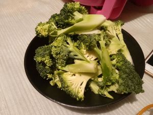 将西蓝花碎放入鸡蛋液中搅拌均匀,放一点点盐(一岁以下宝宝不加盐)。盖盖上锅中火蒸10分钟左右关火在焖5分钟。