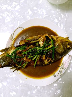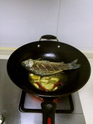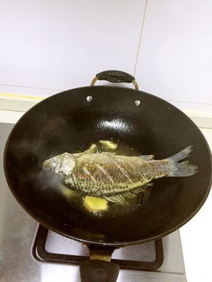 准备鲫鱼一条,在鱼背上划几刀,撒一点盐