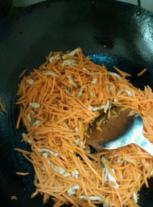 锅里放油,烧热,下入瘦肉丝翻炒至断生,加入胡萝卜继续翻炒