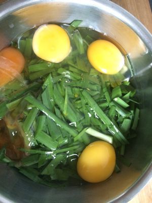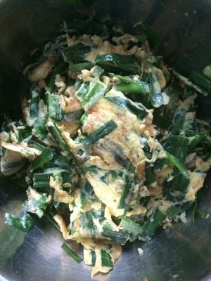 原料韭菜鸡蛋,喜欢菜多就少放鸡蛋,喜欢吃蛋就少放韭菜哦~