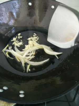 锅烧油,煸香䓤、姜、蒜,后放番茄酱。