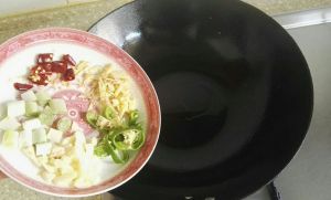 留少许底油,煸大料出香味,放面酱炒香,加葱花,加适量水;