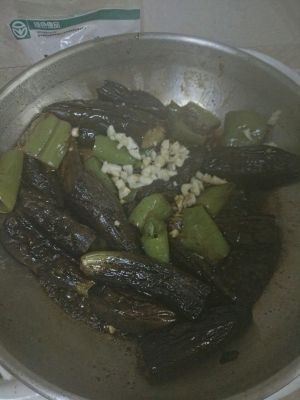 锅内少许油,倒入葱段、花椒等调料炒香,放入茄子,翻炒均匀后倒入炸好的土豆,依次放入:1/3碗水、老抽、盐,最后少许糖收汁,出锅前放少许味精调味。