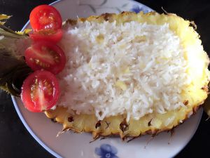 将盛好米饭的菠萝放入锅里蒸20分钟即可。