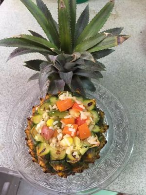 米饭炒好后盛入菠萝壳
