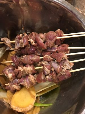 羊肉切3厘米左右块。用葱姜料酒油及各种调料腌制。腌的时间越长越进味道。
