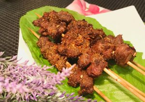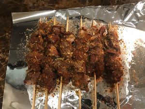 下面垫了锡纸,再刷油,撒辣椒粉孜然粉孜然粒,椒盐粉。
