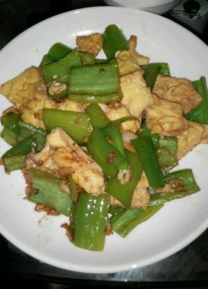 另起一锅或者把蛋装到盆里,再放油,加青椒翻炒