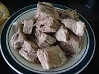 买回的排骨斩块然后飞水。