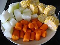 准备食材:冬瓜,玉米和胡萝卜。