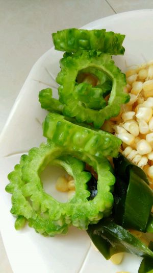 玉米掰成小段~胡萝卜切块~马蹄切两半。枸杞洗干净,姜切片。