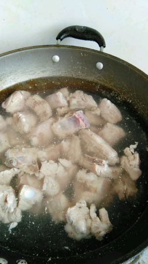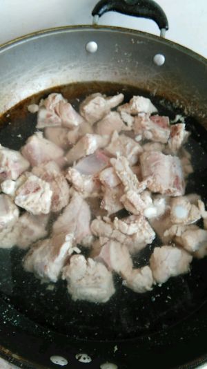 等待水开,再将排骨煮5分钟,然后将焯水后的排骨过凉水后捞出控干水分。