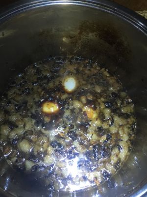 大火滚开后放入煮好的鸡蛋(不用拍照了吧!煮鸡蛋都会)小火慢慢炖1.5个小时,时不时的搅拌,不要糊锅!