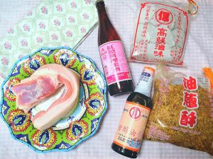 所需食材展示 ps 这是一斤五花肉的用量 如果半斤则所有东西都减半