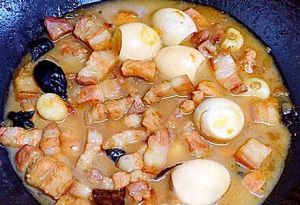 加入开水没过卤肉小火一小时至肉质酥烂,加入开始炒好的红葱酥,继续煮二十分钟。