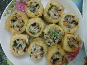 将陷料酿入豆腐里面
