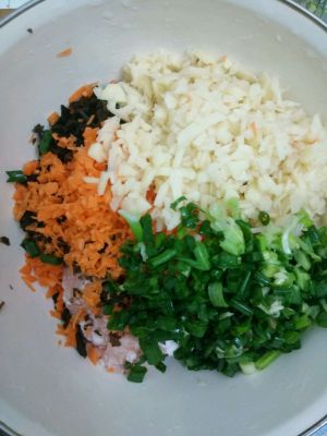 猪肉剁碎,放盐,味精,放葱花调好味