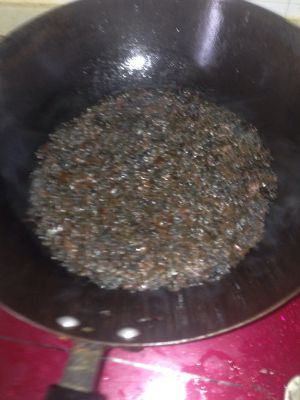 梅干菜多洗几遍,挤干水分切碎,炒锅多点油,小火炒然后加花椒、白糖