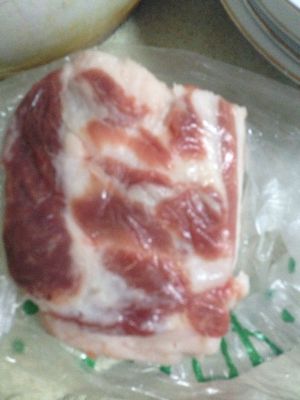 把五花肉洗干净,锅里放水把五花肉煮一下