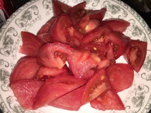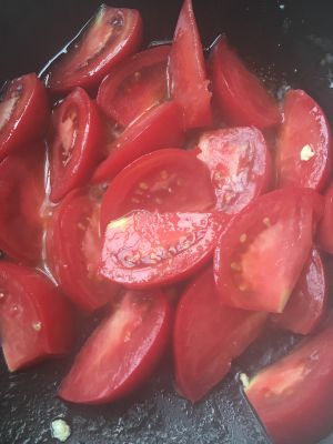 西红柿洗净,切滚刀块(易炒出番茄汁、更入味)
