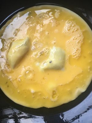 锅中烧热放油,倒入鸡蛋液,煎至两面金黄