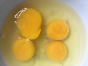 西红柿,洗净切块,鸡蛋打入碗中,放少许盐打散