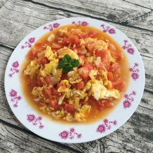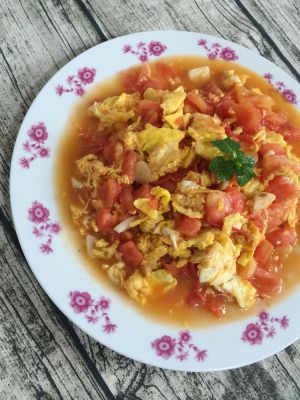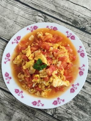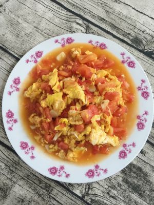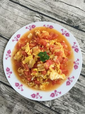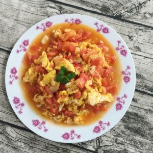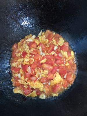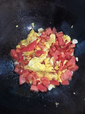 再起油,放入大蒜西红柿翻炒,放盐,炒散之后放入鸡蛋。翻炒一下,加糖,鸡精,加入水淀粉。片刻出锅!