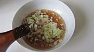 在料酒中加入适量的盐, 糖, 醋, 生抽, 胡椒调成料汁备用;