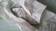 将泡好的带鱼段拿出来用厨房纸巾吸去表面的水;