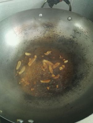 在锅中加点底油,将刚才沥出的姜葱蒜末爆香;