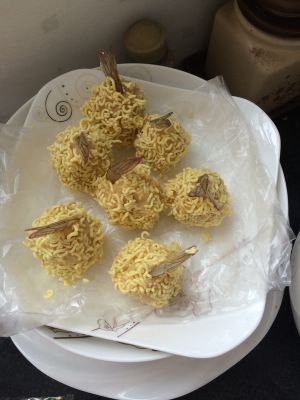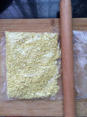 用土豆泥包住虾,在用鸡蛋液过一下,最后再裹上方便面