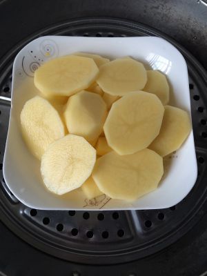 水烧开,垫上薄片胡萝卜防止沾底,大火蒸10分钟即成