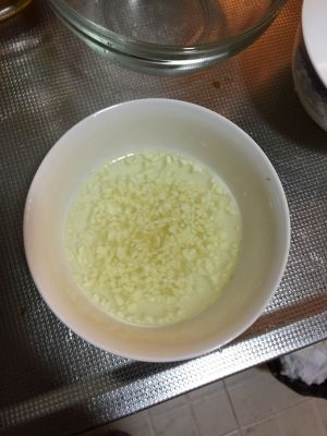 接下来就是调好味汁,好不好吃,这个也是关键点哈~番茄酱,蒜末,葱白段,白糖,精盐,芝麻油,鸡精,湿淀粉,混合水在一起制成调味汁