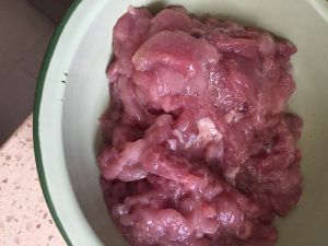 切好的肉加少许盐,料酒,胡椒粉腌制10分,再加入适量的蛋清腌15分
