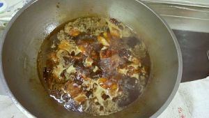 锅中放入冰糖,烧到汁浓,加盐,最后淋香油出锅即可。