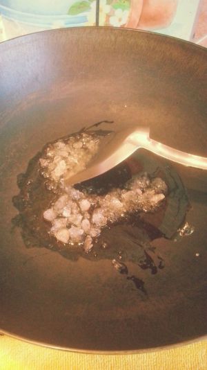 冷油下冰糖,用小火熬化,慢慢来不要急。大火不好控制容易过头,焦了就有苦味了