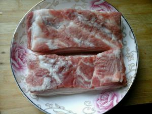 肋排五花肉,如果你想做的好看,好吃,拿得出手,就选用上好的猪肋排处的那个五花肉,一般早上去大一些的猪肉批发市场都可以买到上好的五花肉,价钱其实不贵,不要去超市买,太贵了。猪肉在3-4斤为宜,少了不值得做,做多了可以放冰箱里,以后做菜放一些。