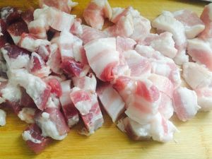 带皮五花肉切成2厘米见方的块