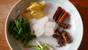 准备好桂皮8克 茴香5克 冰糖20克 生姜20克