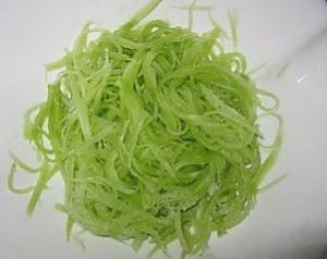 莴苣去皮,用刨刀刨成丝,加盐腌至少1小时