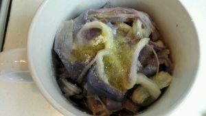 在步骤2中的碗中,加入酱油、盐、味精、辣椒油,拌匀。然后浇到蒸熟的茄子上,即可。