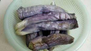 茄子洗净,切成段,放入锅中蒸10-15分钟。