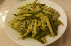 第一步 所有食材洗净,莴笋切块、竹笋切条。