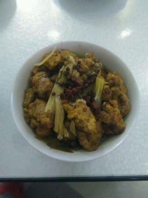 在碗中放入炸制好的鸡块,放入上述蒸料搅拌均匀后,在蒸锅中蒸40分钟即可。