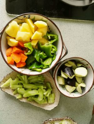 空隙时间土豆 青椒 茄子 胡萝卜 西兰花根 均改刀